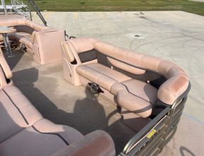 Bimini top rear ladder with tow bar on this tritoon. honda 225 hp motor with recently replaced trim pump. boat has full boat cover, raise... READ MORE