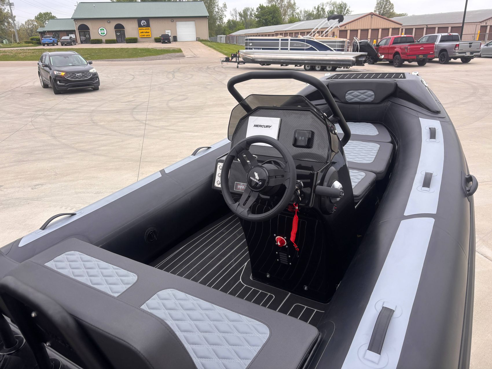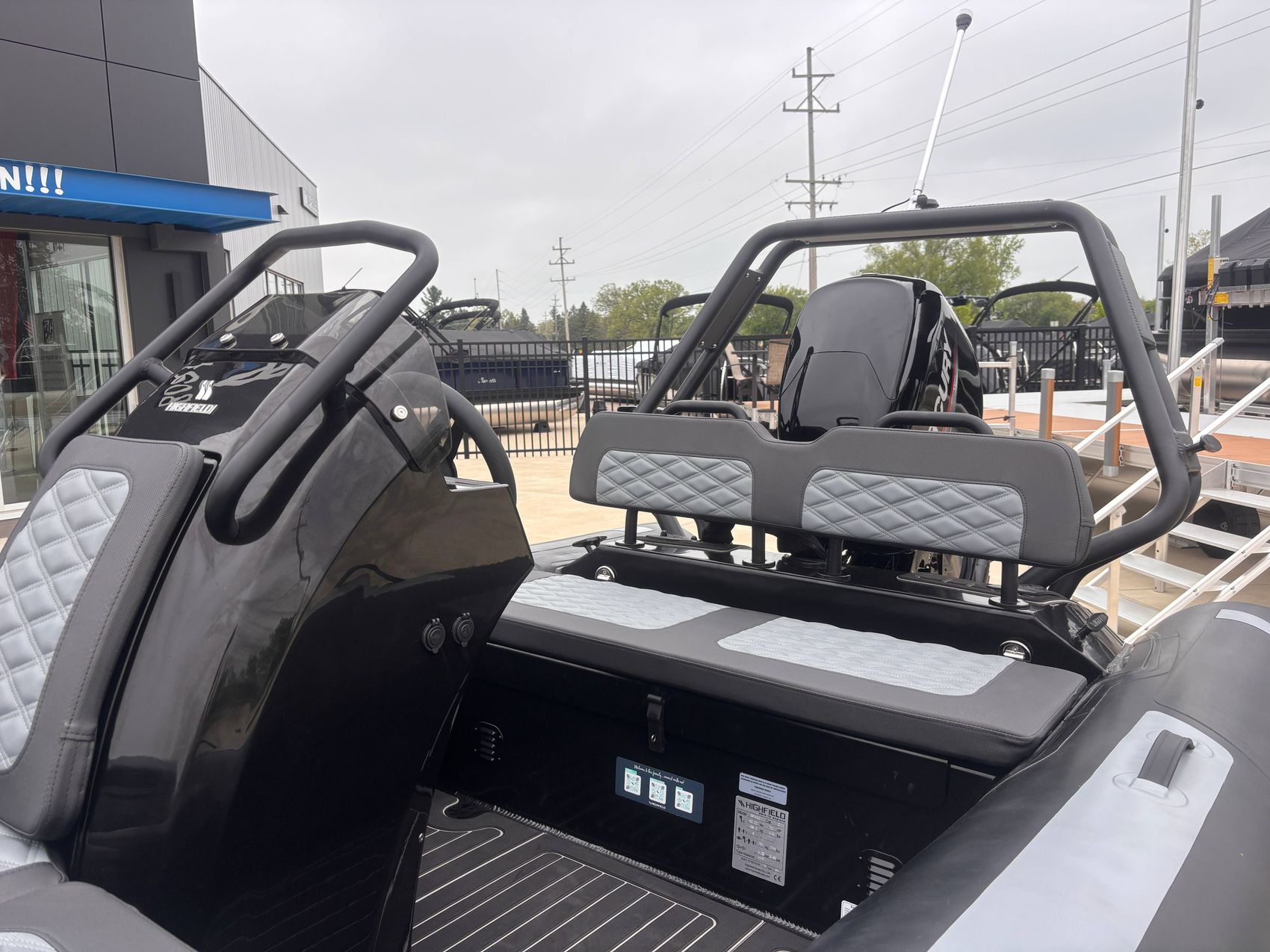 Colour and Design Details: An embodiment of durability and aesthetics, the 2025 Highfield Sport 420 features a tube crafted from high-end BLACK hypalon. This choice of material ensures lasting durability and robustness. The hull, coated in the same captivating black color, lends a sleek, streamlined appearance to the boat. The thoughtful addition of DARK GREY & DIAMANTE CARBON INTEGRATED REAR SEAT style cushions contributes an element of luxury and comfort to your seafaring experience.