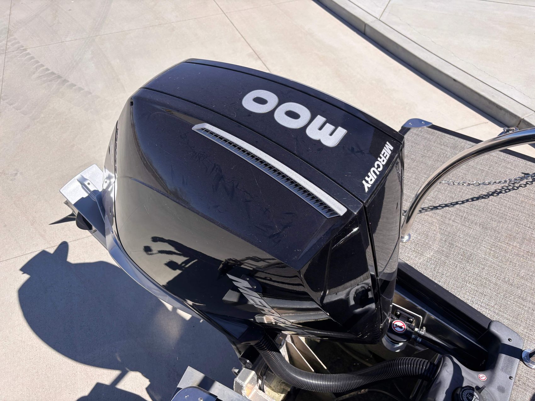 The boat is powered by an impressive 300 HP Mercury Verado Motor, which has only run for an efficient 66 hours, ensuring unmatchable performance.