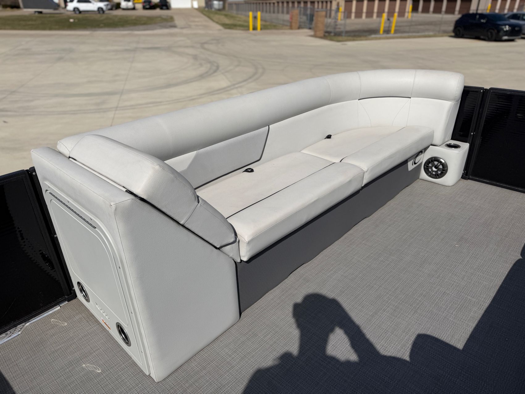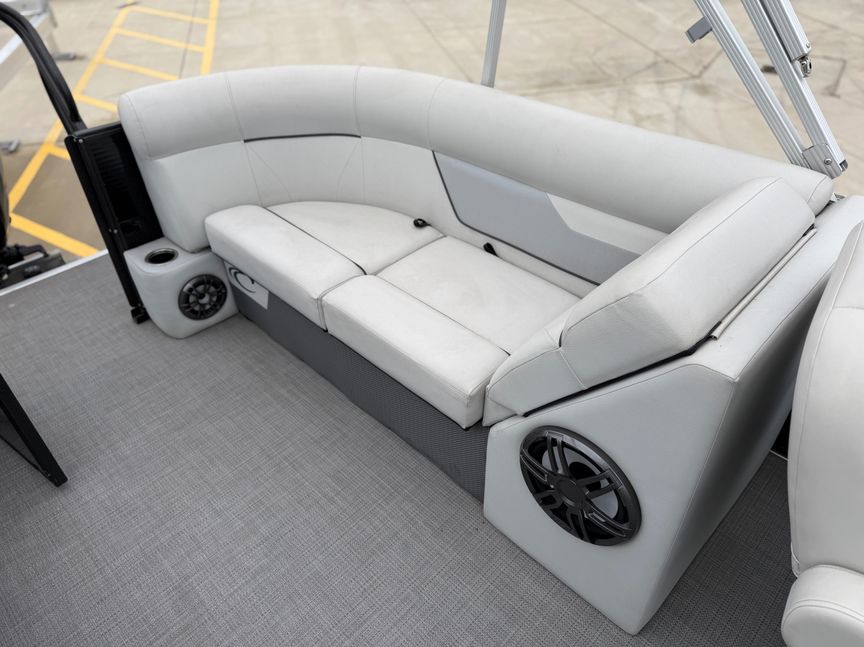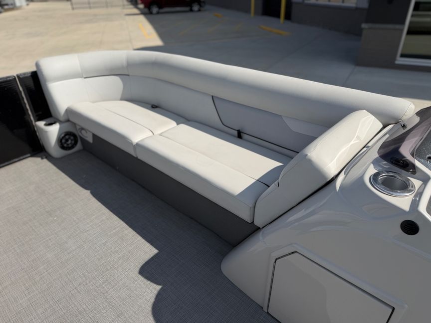This tritoon features a stable and smooth ride, making it ideal for family days on the lake or hosting friends in comfort.