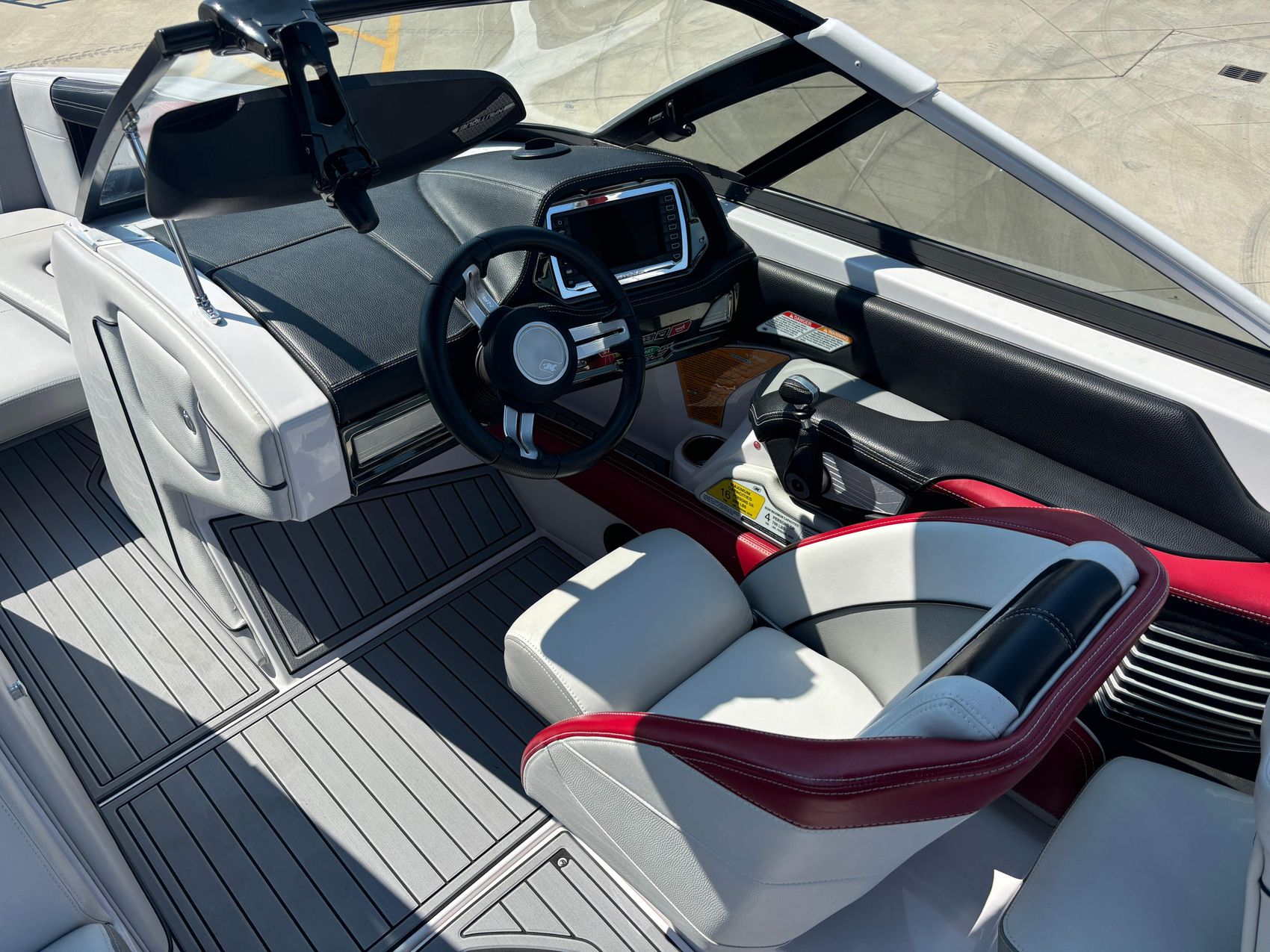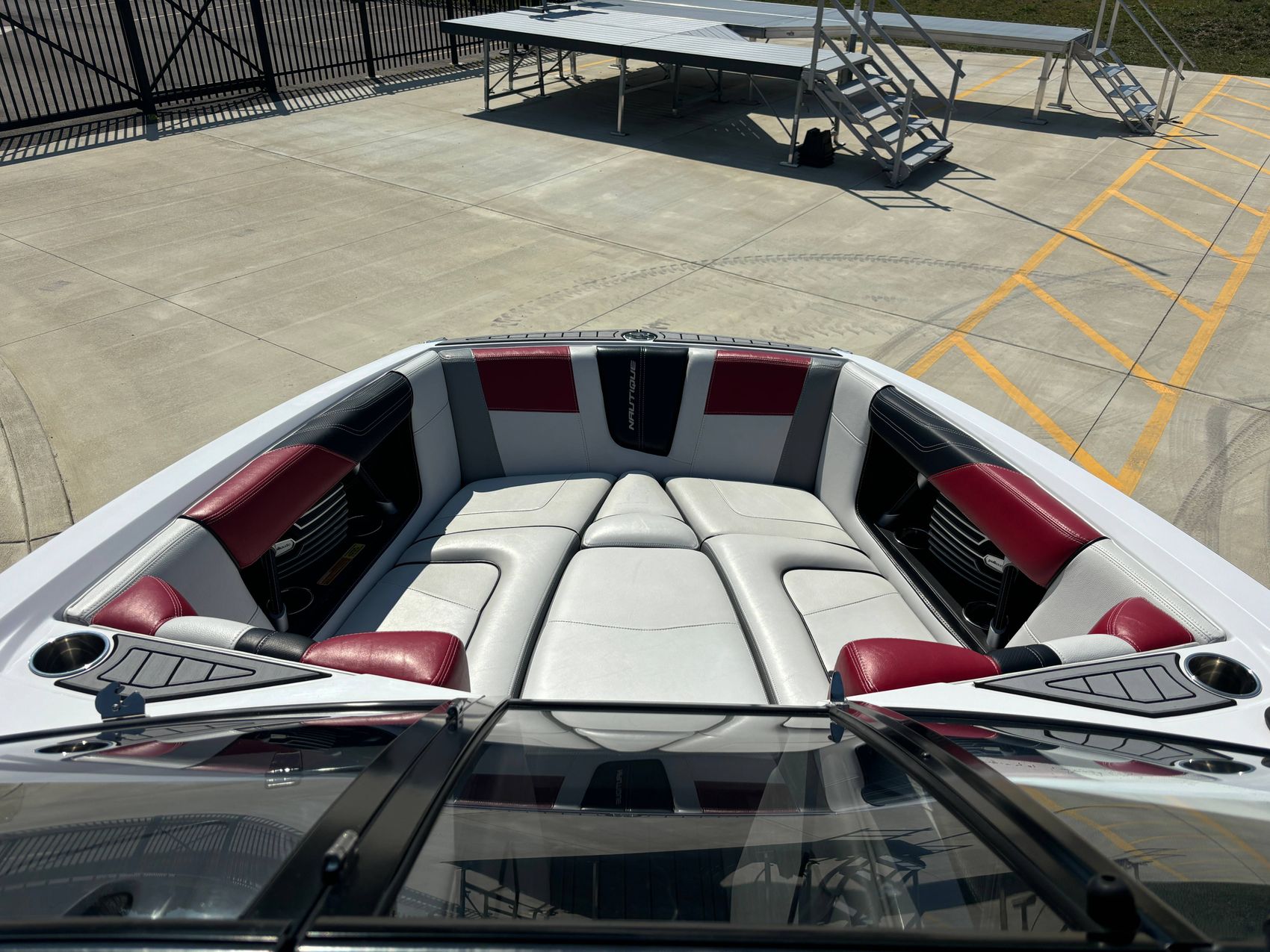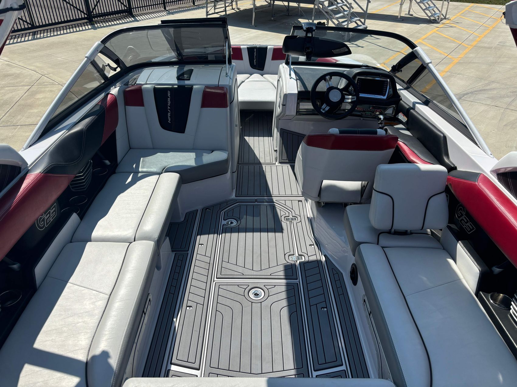 In a bid to provide ultimate comfort and eye-catching aesthetics, the boat also features upgraded seadek flooring which offers superior durability, long-term comfort, and easy maintenance. To add a touch of modernity, there is a linc screen installed for effortless management of controls and display.