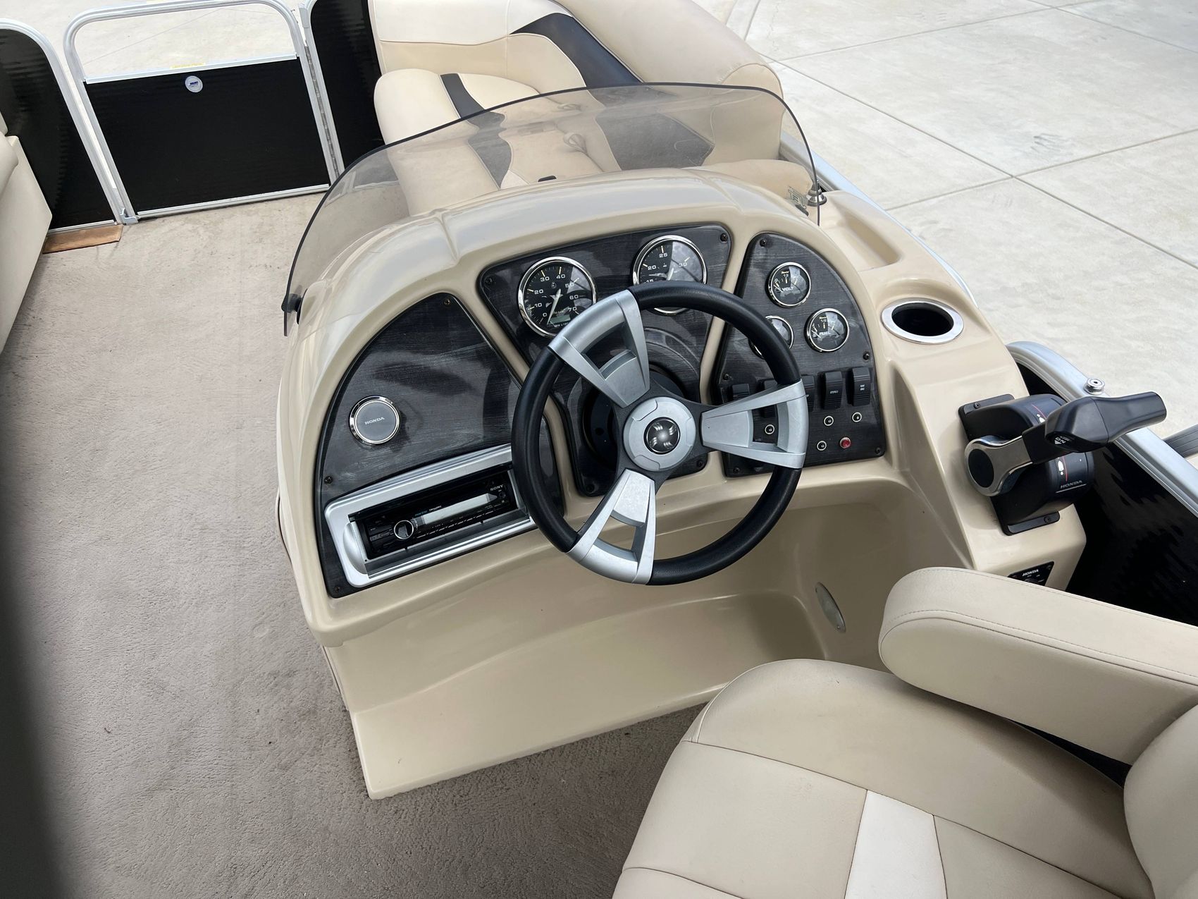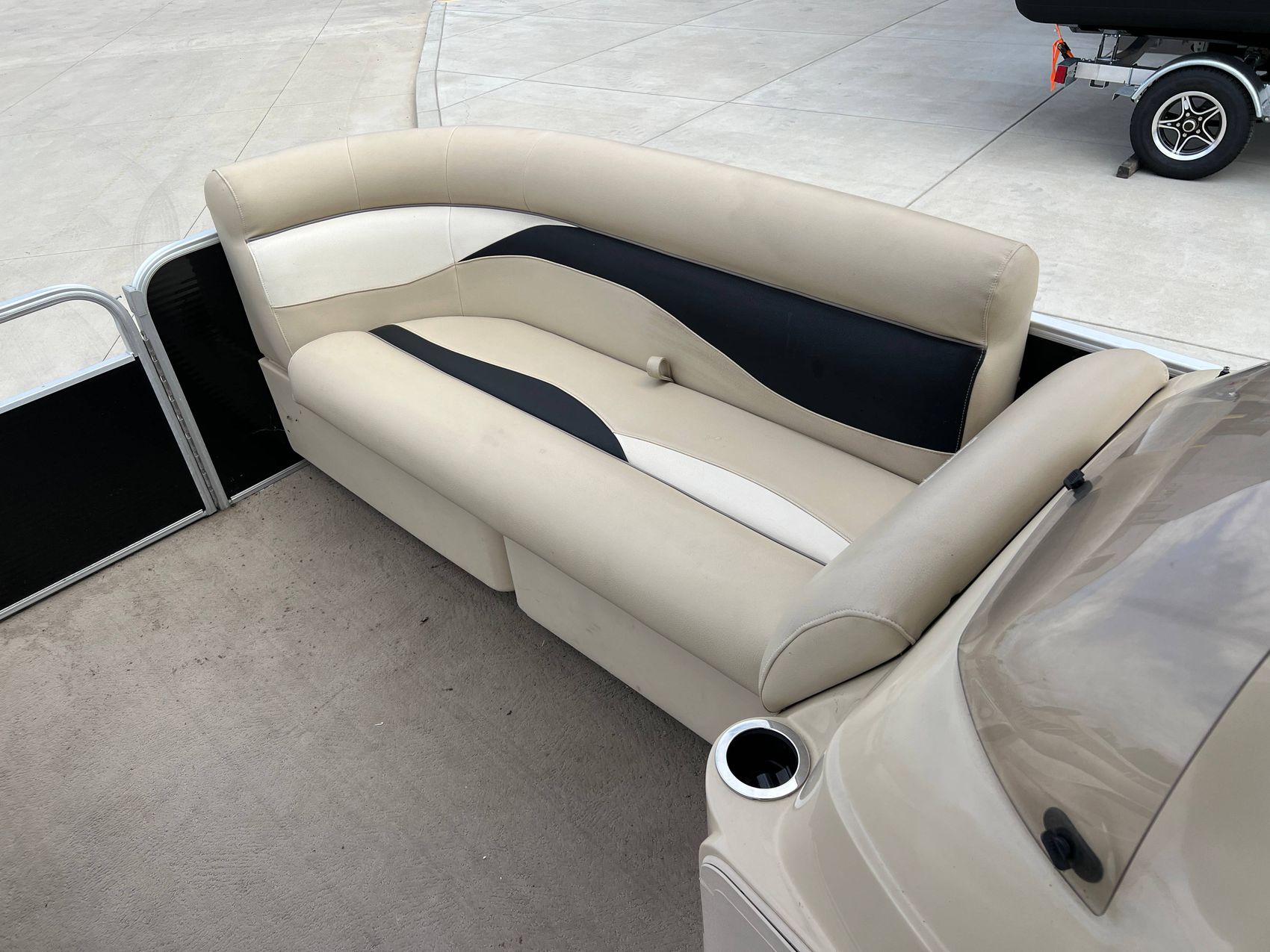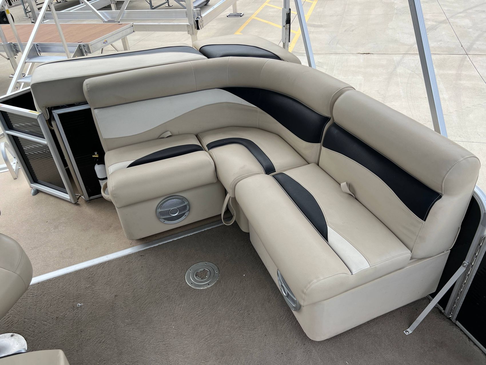 The boat’s interior is adorned with a plush, carpeted floor that gives it a pleasing and cozy appeal. The exterior, on the other hand, features easy-to-clean and durable vinyl flooring, ensuring longevity, and ease of maintenance.