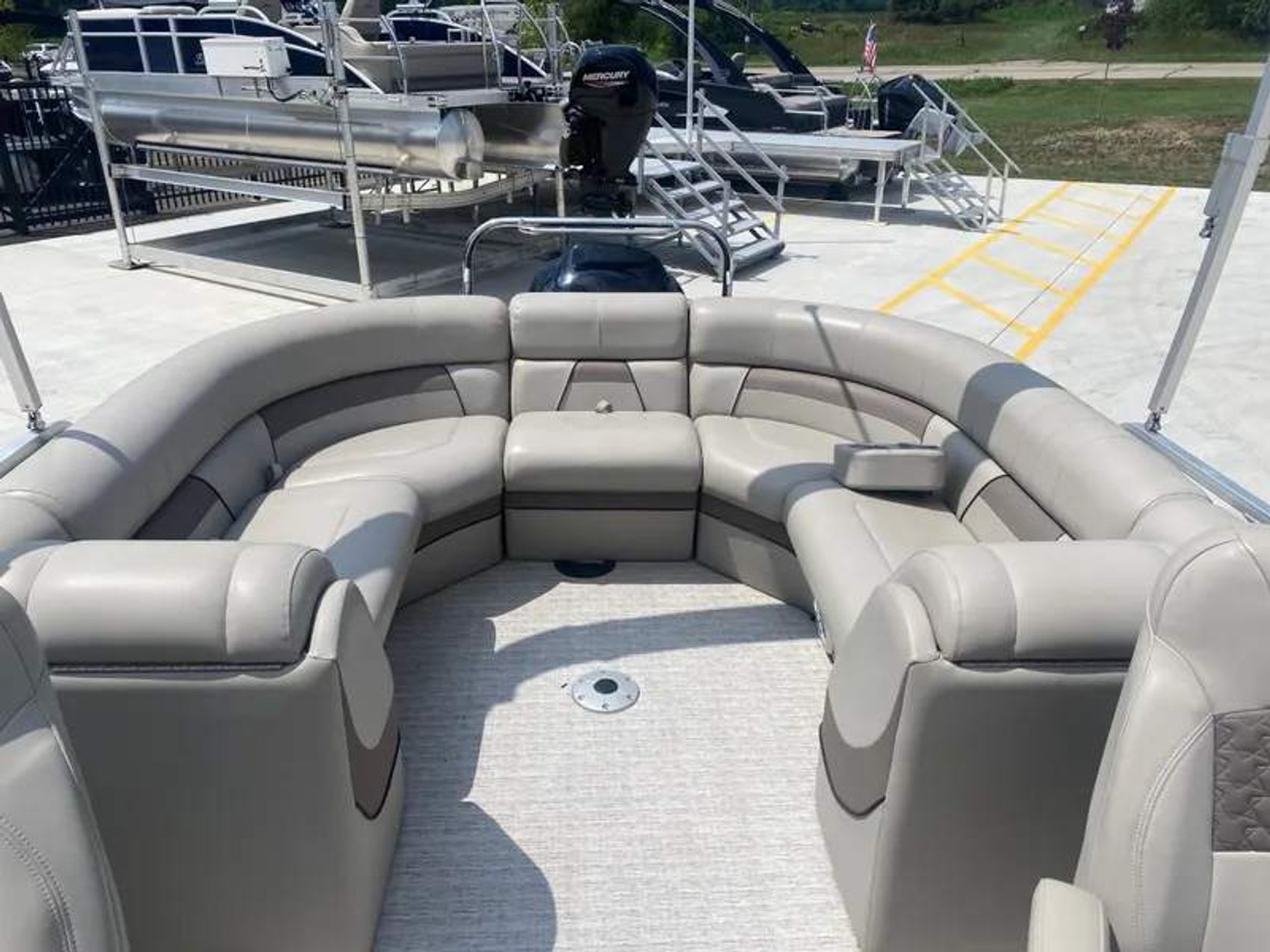 The Trifecta 23RFSS 3.0 Tritoon is a stunning 23 feet long vessel, equipped with a powerful 250 hp Yamaha engine. This boat is not only an embodiment of power but also offers an impressive seating capacity for up to 13 passengers.